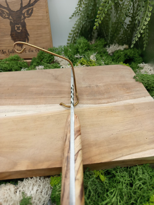 C’est un modèle entrée de gamme, accessible mais artisanal, fabriqué et ajusté dans mon atelier. Une belle manière de découvrir mon travail avec un couteau simple, efficace et durable.