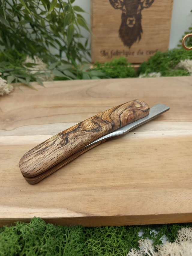 Voici le modèle pliant à friction “Le Cerf” – Édition Prestige n°004, une pièce unique entièrement conçue et fabriquée dans mon atelier.