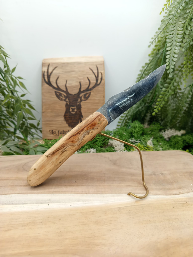 Voici le modèle pliant à friction “Le Cerf”, une pièce artisanale réalisée dans mon atelier. Sa lame en acier inox Z40C13 combine solidité, tranchant durable et bonne résistance à la corrosion, idéale pour un usage quotidien. Le système à friction, simple et traditionnel, permet une ouverture fluide sans ressort ni cran d’arrêt, dans l’esprit des couteaux d’autrefois.